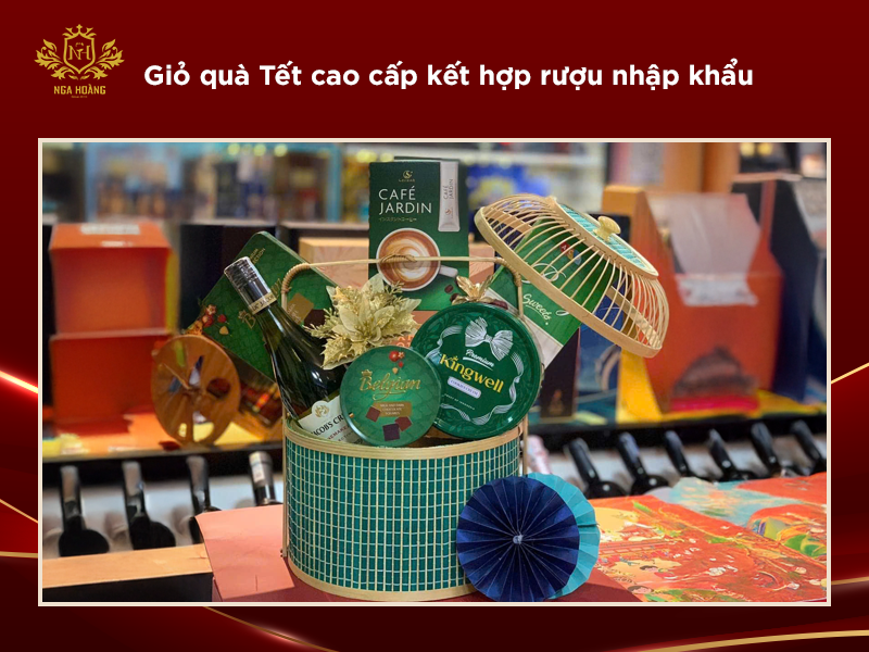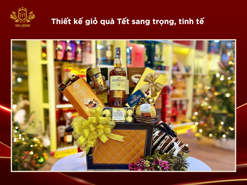 Nga Hoàng mang đến giải pháp giỏ quà Tết trọn gói, kết hợp rượu nhập khẩu, hộp quà và giỏ quà cao cấp, được tư vấn theo: ngân sách – số lượng – mục đích biếu tặng.