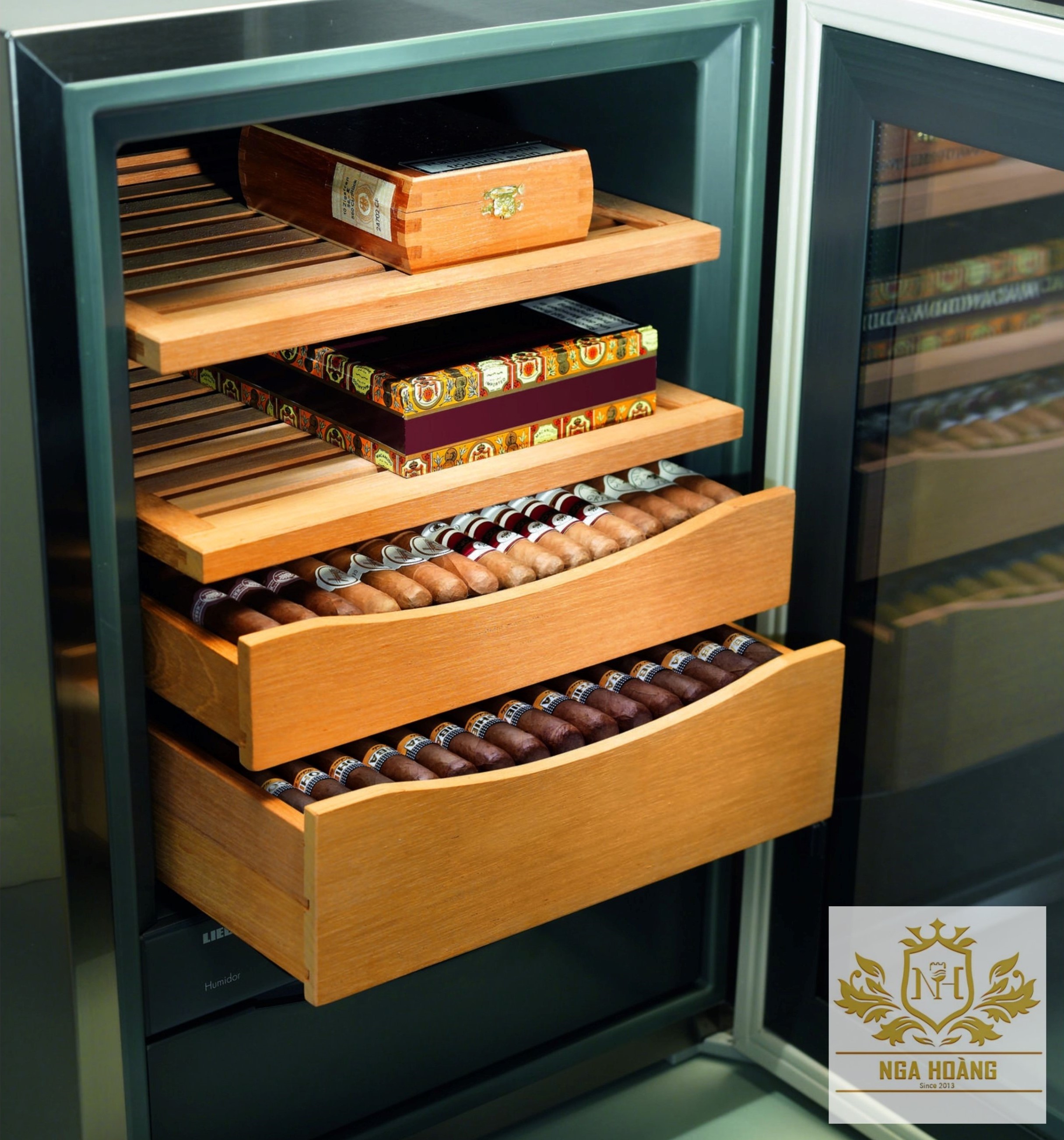 Đặc biệt, tủ ủ giữ ẩm này có nhiều ngăn để bảo quản xì gà. Đảm bảo gọn gàng, sạch sẽ và ngăn nắp. Hạn chế các tình trạng hư hỏng trong quá trình bảo quản xì gà. Bản thân tủ ủ giữ ẩm được chế tạo hết sức công phu.