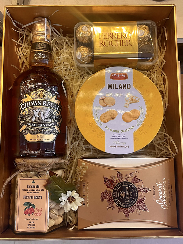 Từ những miếng mứt hoa quả thượng hạng, bánh kẹo truyền thống, đến rượu ngoại nhập và trà sữa chua nổi tiếng, mỗi sản phẩm trong hộp quà đều được chọn lựa kỹ lưỡng để đảm bảo chất lượng tốt nhất.