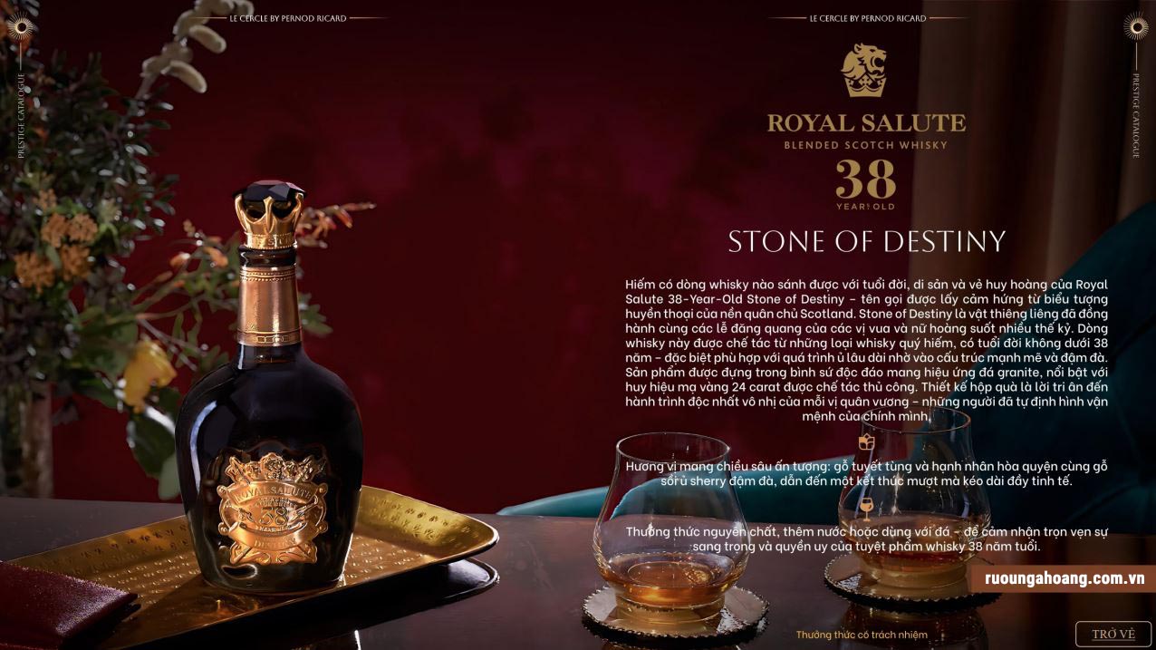 Trong nhiều thế kỷ, Stone of Destiny hay còn gọi là “Hòn đá của định mệnh”, luôn là biểu tượng của sự thịnh vượng, quyền lực, đóng vai trò quan trọng trong việc đăng cơ của các vương giả Scotland thời xa xưa, đây được ví như là ngai vàng uy quyền cho triều đại mới của mỗi vương giả khi đăng cơ, và truyền thống này vẫn còn tồn tại cho đến tận ngày nay. Stone of Destiny, được sử dụng lần cuối vào ngày 2 tháng 6 năm 1953, trong buổi lễ đăng cơ của nữ hoàng Elizabeth Đệ Nhị, cũng đánh dấu cột mốc ngày ra đời của Royal Salute Scotch Whisky - hay Chivas 38, như một cống vật của hãng Chivas Brothers cho vị nữ hoàng đầy quyền lực này. Cho đến tận ngày nay, Destiny Stone trở thành món bảo vật đại trưng cho sự tin tưởng của người Scotland dành cho nữ hoàng của mình.