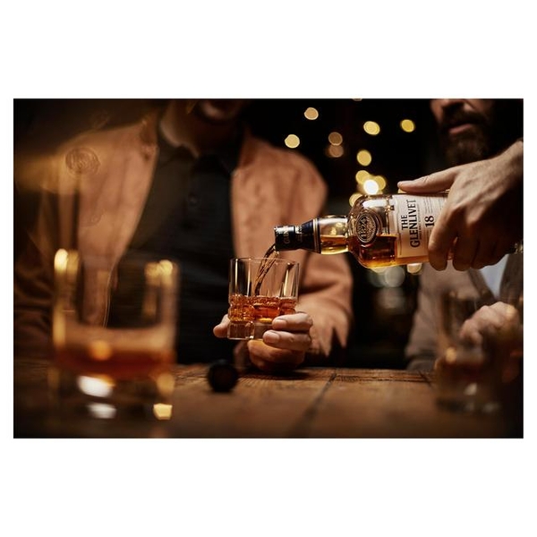 Rượu Glenlivet 18 năm là sản phẩm sau hơn 18 năm trong các thùng gỗ được lựa chọn , The Glenlivet 18 năm trở thành một loại rượu whisky mạch nha đạm đà hương mật ong không thể nhầm lẫn được.Không có gì ngạc nhiên, The Glenlivet 18 năm đã giành được hai huy chương vàng tại cuộc thi Rượu mạnh và Rượu vang quốc tế – cuộc thi đỉnh cao trong ngành rượu trên thế giới