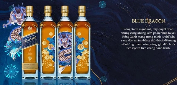 Viên ngọc xanh quý giá Blue Label năm nay lại như “hổ mọc thêm cánh” với vẻ ngoài đặt biệt do họa sĩ nổi tiếng Shan Jiang thực hiện dành riêng cho Tết Nhâm Dần 2022. Rồng Xanh mạnh mẽ, đầy quyết đoán nhưng cũng không kém phần nhiệt huyết. Rồng được xem là loại vật của quyền uy, mang trong mình tư thế sẵn sàng đón nhận những thử thách để mang về những thành công vàng, ghi dấu bước tiến rực rõ trên chặng hành trình