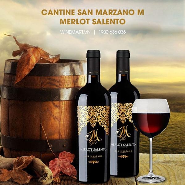 Nếu các chai rượu vang của San Marzano khác làm từ nho Cabernet Sauvignon có thể ví với một người đàn ông cứng cáp, khỏe mạnh, vững chãi trong mọi hoàn cảnh thì những chai rượu vang làm từ nho Merlot - tiêu biểu như M Merlot Salento cũng giống như một người đàn bà yêu kiều, diễm lệ, hơi đẫy đà một chút nhưng rất là hấp dẫn. Cùng với những chai vang làm từ nho Cabernet Sauvignon, nó tạo thành những chai rượu đỏ thuộc hàng thượng hạng.