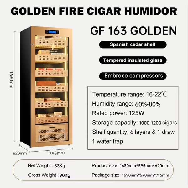 TỦ BẢO QUẢN CIGAR 1000 ĐIẾU GOLDEN FIRE GF-163