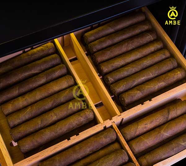 Ngoài trang bị nhiều khay chứa sản phẩm còn có khay chứa được làm từ tuyết tùng chất lượng. Khay chứa rộng rãi, phân tách nhiều ngăn nhỏ giúp tạo khoảng không cho xì gà. Khay có độ dày chắc chắn, giúp sử dụng bền trong thời gian dài.