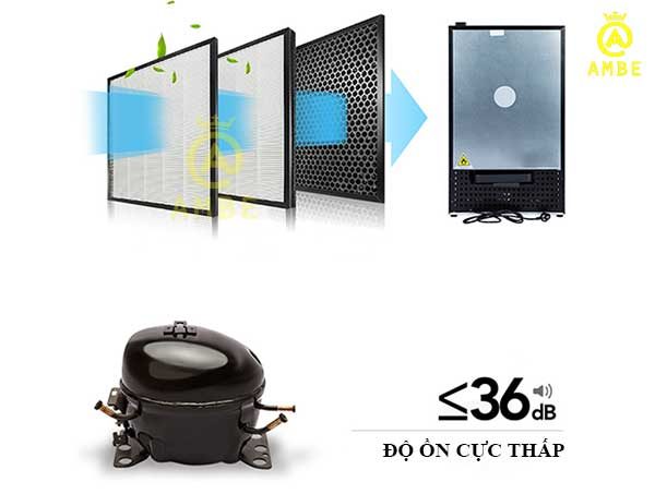 Tủ bảo quản 250 điếu Golden Fire RA 222 với 3 tấm lưới lọc giúp lọc bụi vào máy hiệu quả. Độ ồn nhỏ hơn 36dB cực thấp giúp máy chạy êm mà không phát ra tiếng ồn khó chịu.