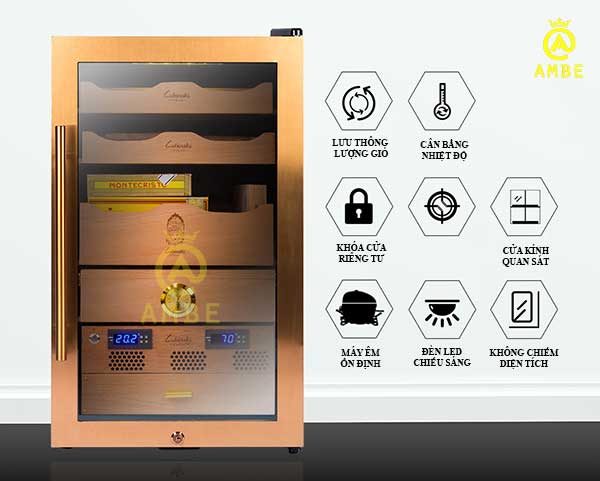 - – Tiện ích: Hệ thống giảm rung lắc, Điều hòa độ ẩm, Lưu thông không khí, Bơm lưu chuyển nhiệt độ (điều chỉnh độ ẩm), Đồng hồ hiển thị độ ẩm, Khóa bảo vệ