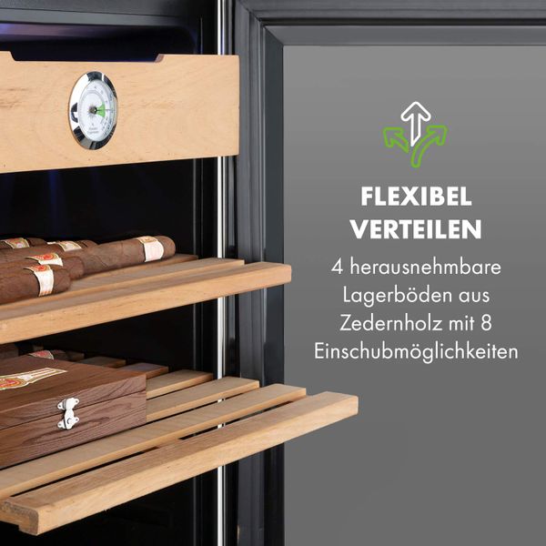 – Dung tích lưu trữ của tủ Cigar Klarstein 78 lít duy trì mùi thơm tự nhiên của xì gà, ngay cả khi lưu trữ lâu.