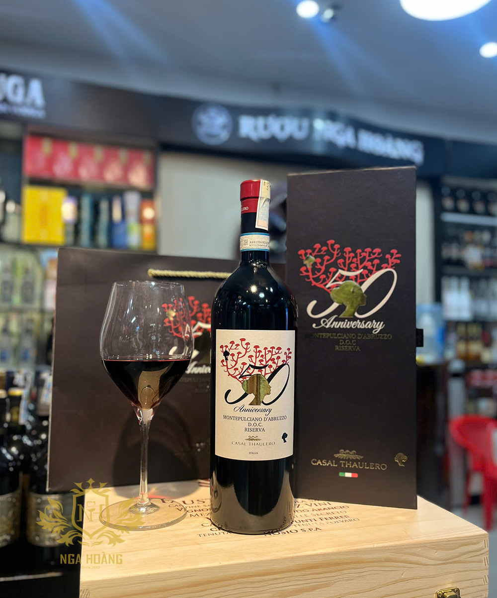 Vang Ý 50th Anniversary Montepulciano d’Abruzzo DOC Riserva là tác phẩm đánh dấu cột mốc 50 năm hình thành và phát triển của Casal Thaulero – một trong những nhà sản xuất vang danh tiếng bậc nhất vùng Abruzzo, Ý.